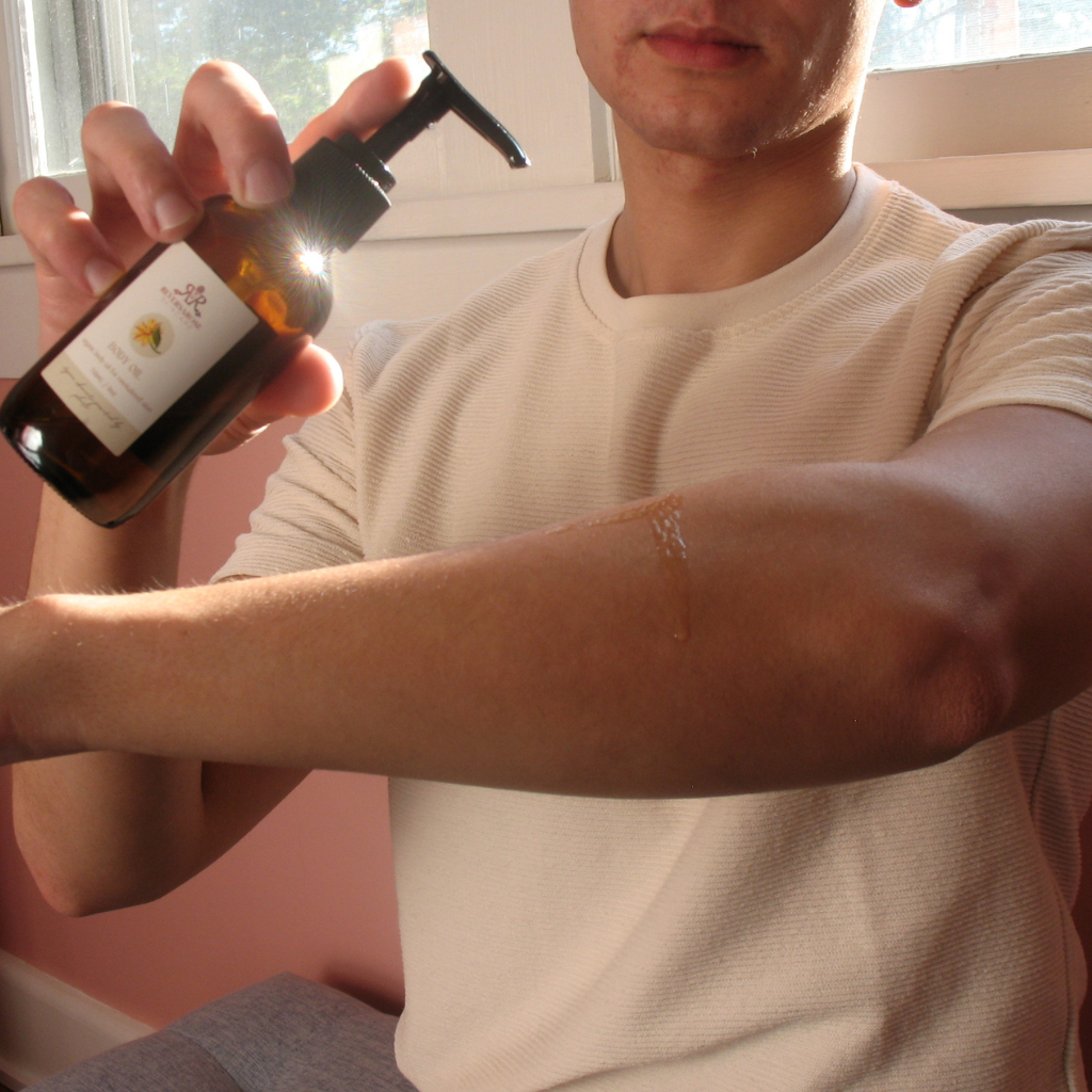A special blend of healing herbs that repair, soften, and protect the skin. Enjoy silky smooth skin with a body oil that melts into the skin, effortlessly.